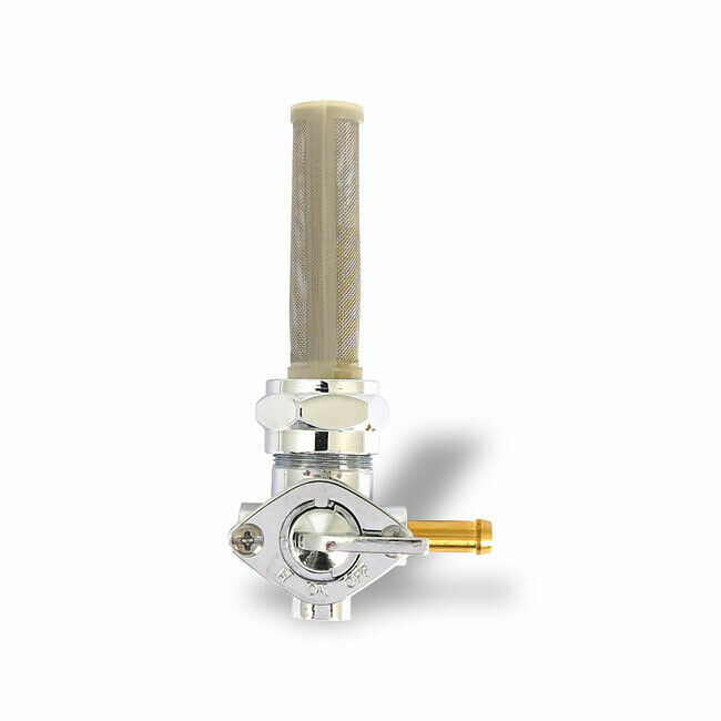RUBINETTO BENZINA CROMATO CON ATTACCO 90° DESTRO